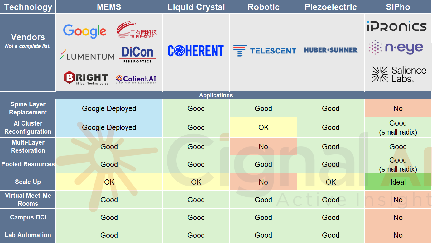 Third, Optical Circuit Switching is a new category. OCS reconfigures optical paths in milliseconds, replacing fixed electrical spine switches. Google pioneered this for AI cluster networking. I think this technology is awesome; it’s lower-power because it stays in the optical domain, so there's no need to convert light into electrical signals for switching and routing.