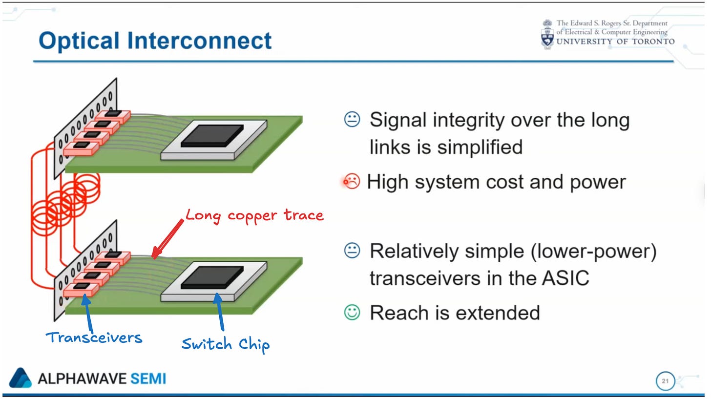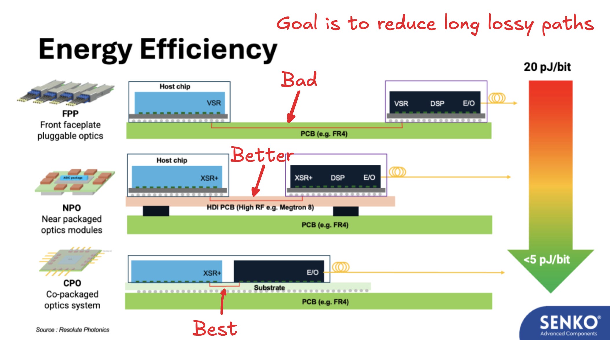 But that same decoupling of optics from the switch is also the source of inefficiency. Everything in engineering is about trade-offs!