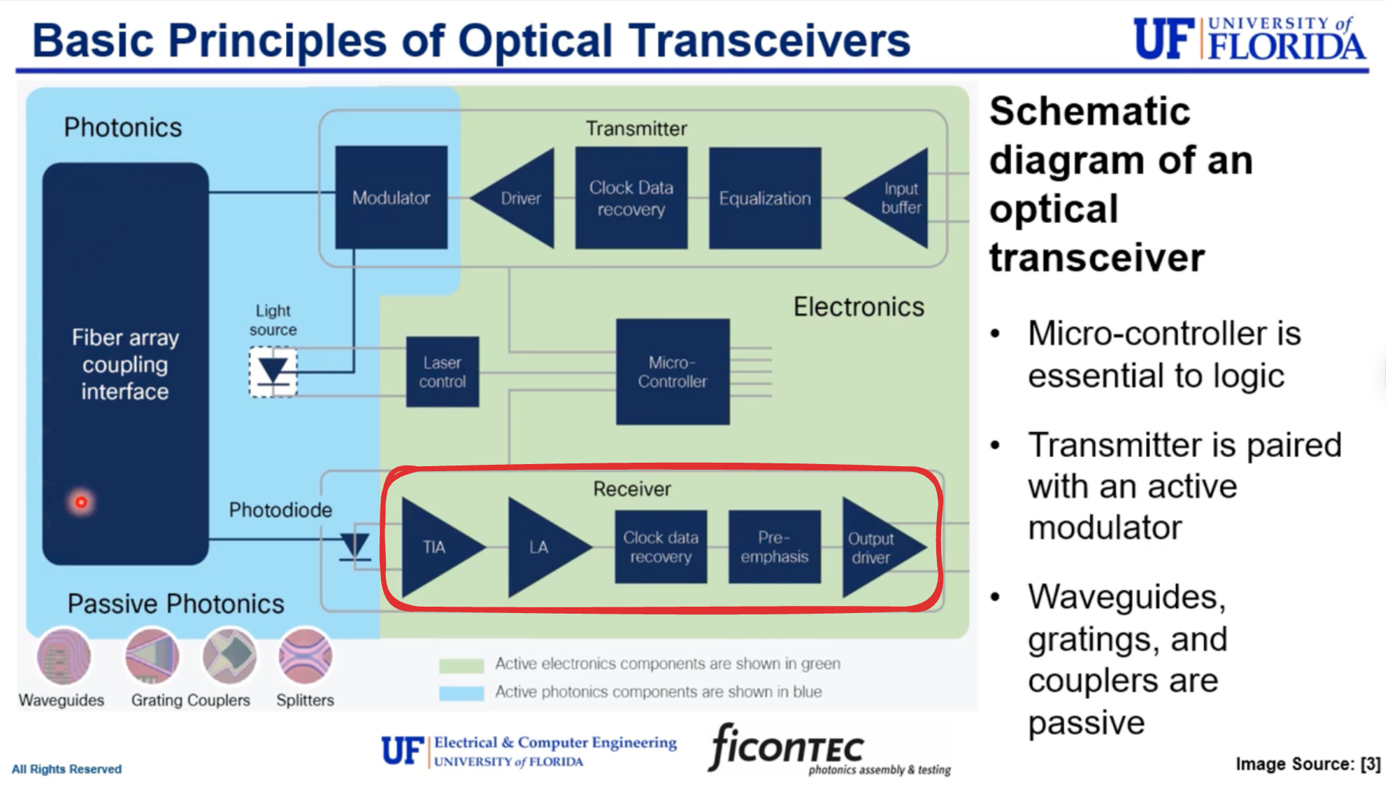 In addition to photodetection, the RX optical engine performs optical coupling and alignment, wavelength filtering in multi-wavelength systems, and basic analog conditioning before handoff to the electrical engine.