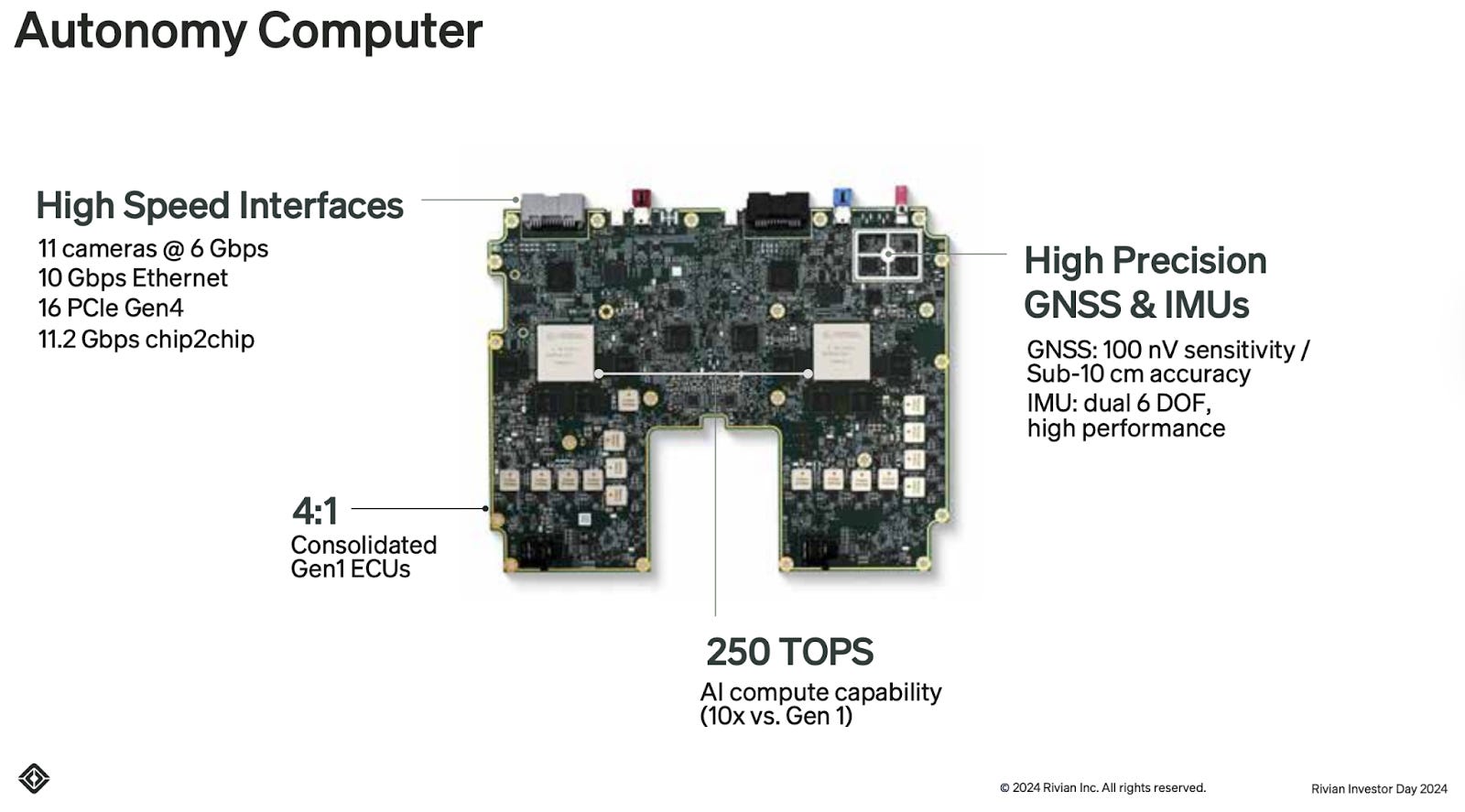 But as Levar Burton used to say in Reading Rainbow: You don’t have to take my word for it! Here’s a peek at Rivian’s electronics, from their June 2024 investor day. Notice anything?