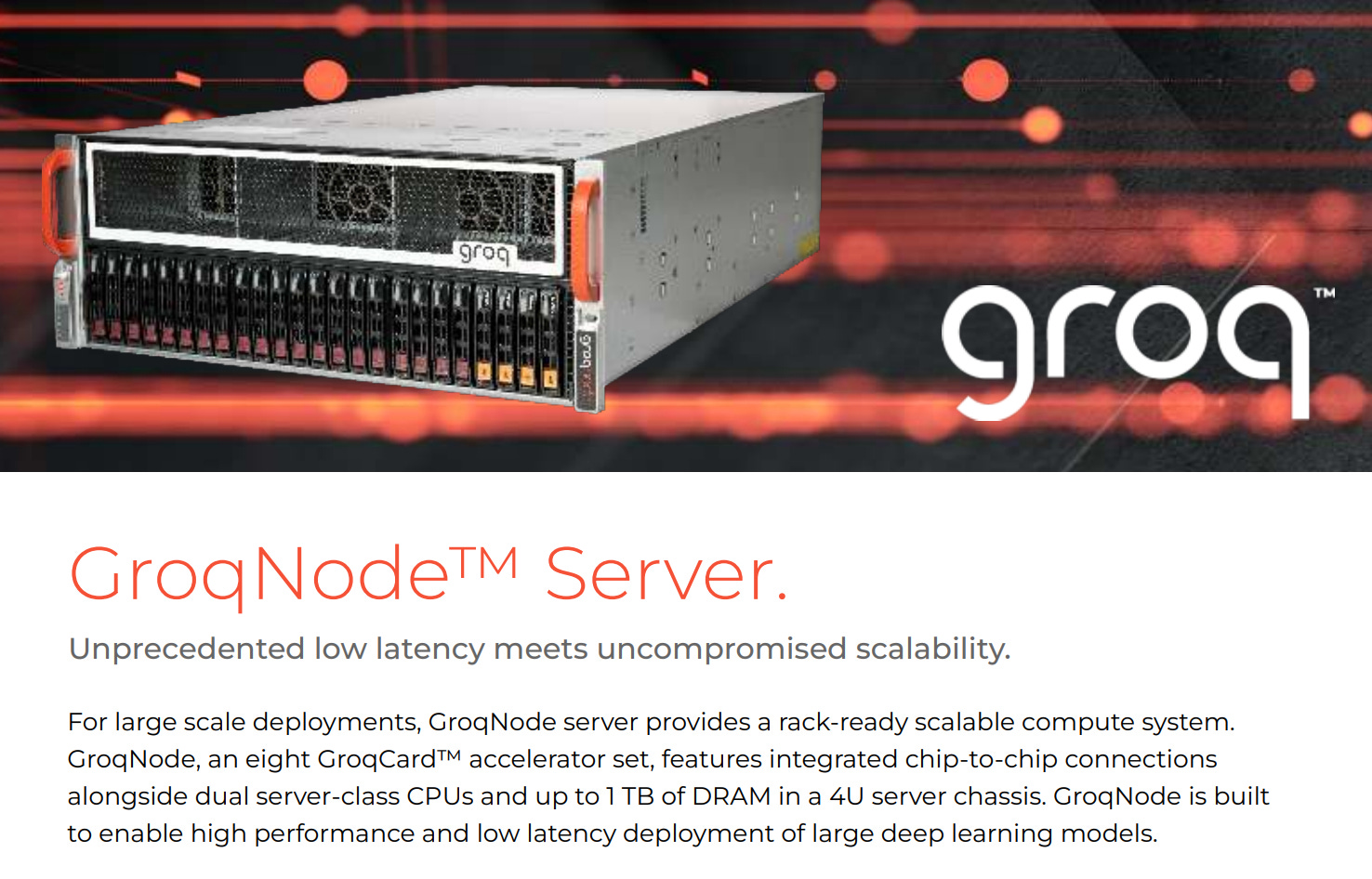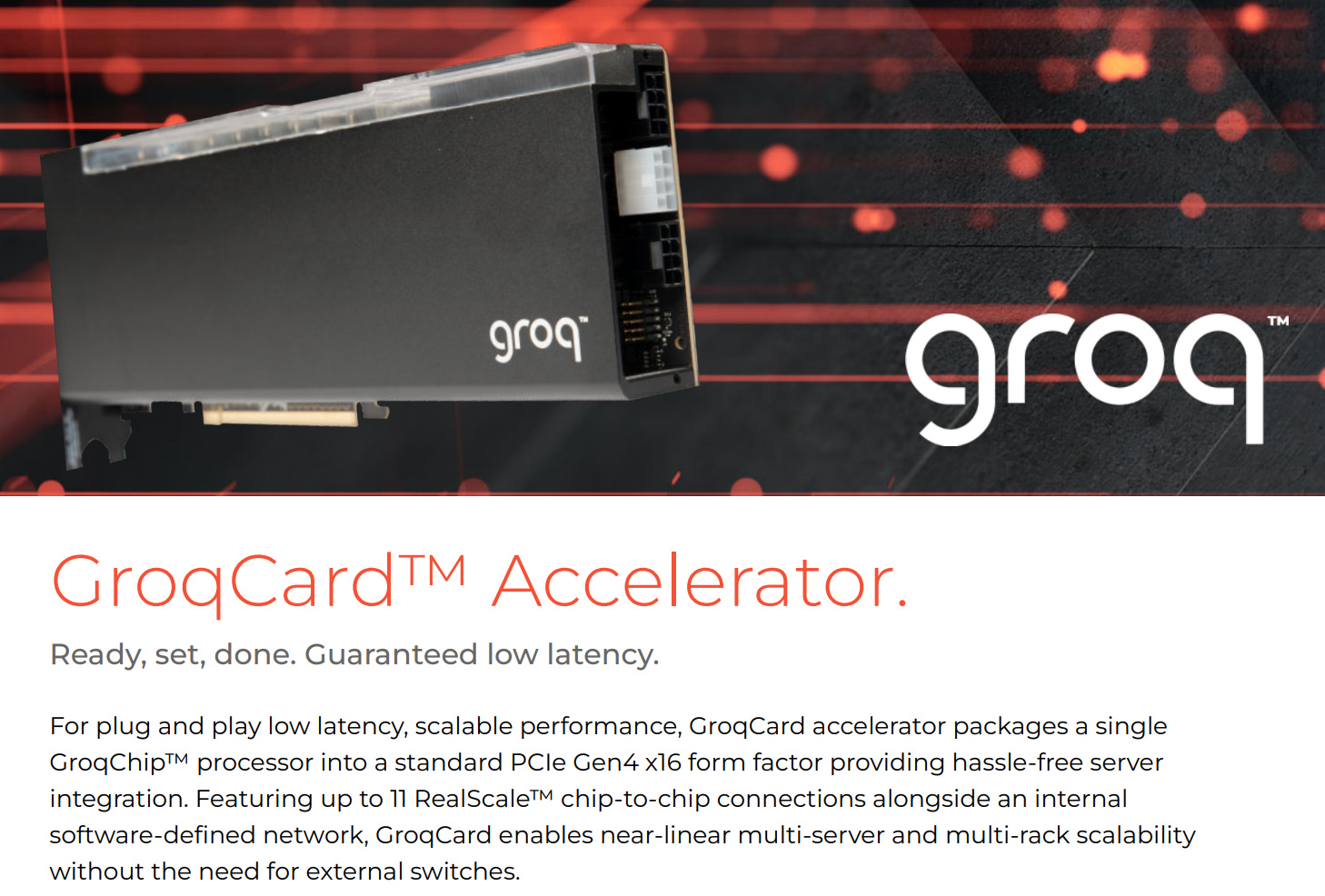 The Next Platform: A pod of its current generation of GroqChips has an optical interconnect that can scale across 264 chips, and if you put a switch between pods, you can scale further but you get the extra hop across the switch jumping between pods, which adds latency. In the next generation of the GroqRack clusters, the system will scale across 4,128 GroqChips on a single fabric, but that is not ready for market just yet, according to Ross. Groq’s next-generation GroqChip, due in 2025, etched in Samsung’s 4 nanometer processes, will scale even further than this thanks to the process shrink, the architectural enhancements, and the advancements in the fabric on the chips.