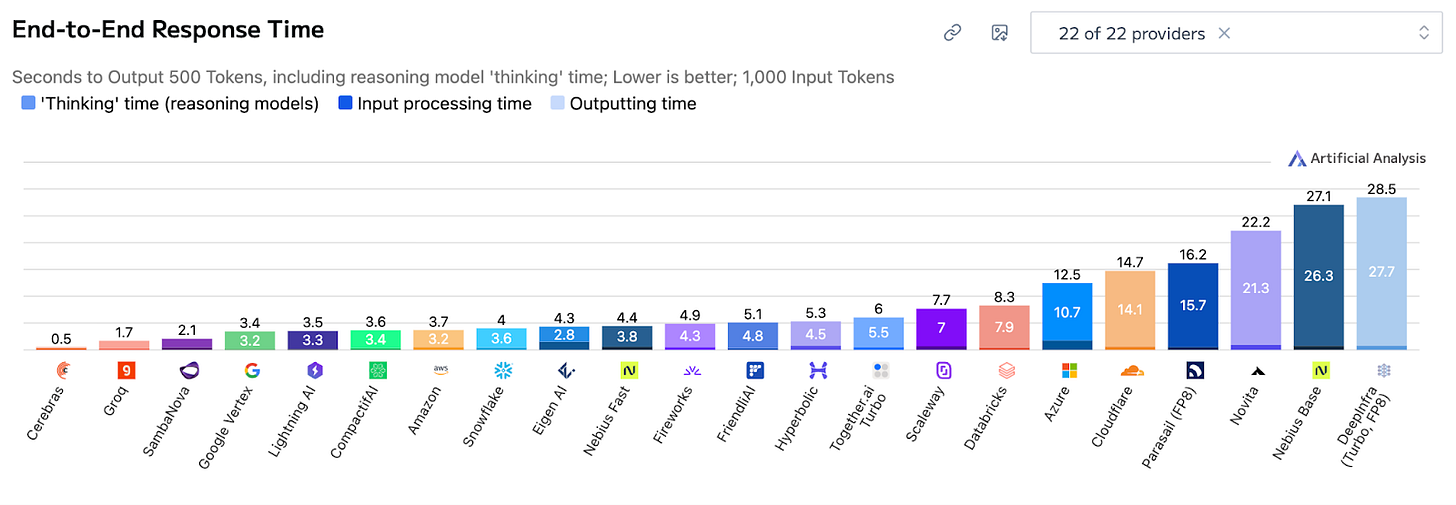 Hence, Cerebras can unlock the best end-to-end response time, massive tokens per second, and very low time-to-first-token: