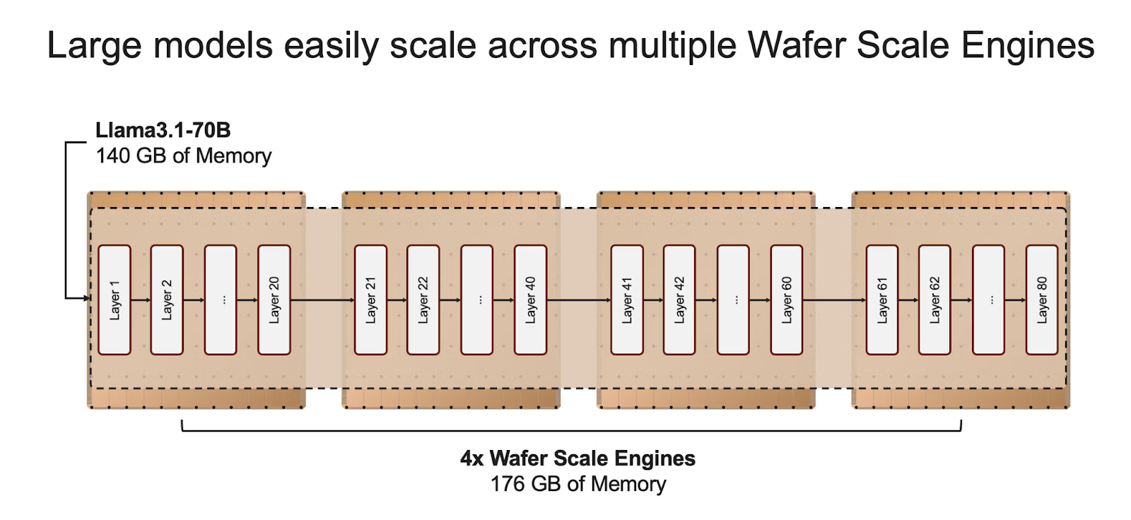 Because Cerebras has 44GB of SRAM per WSE, it only takes 4 wafers to store Llama 70B weights:
