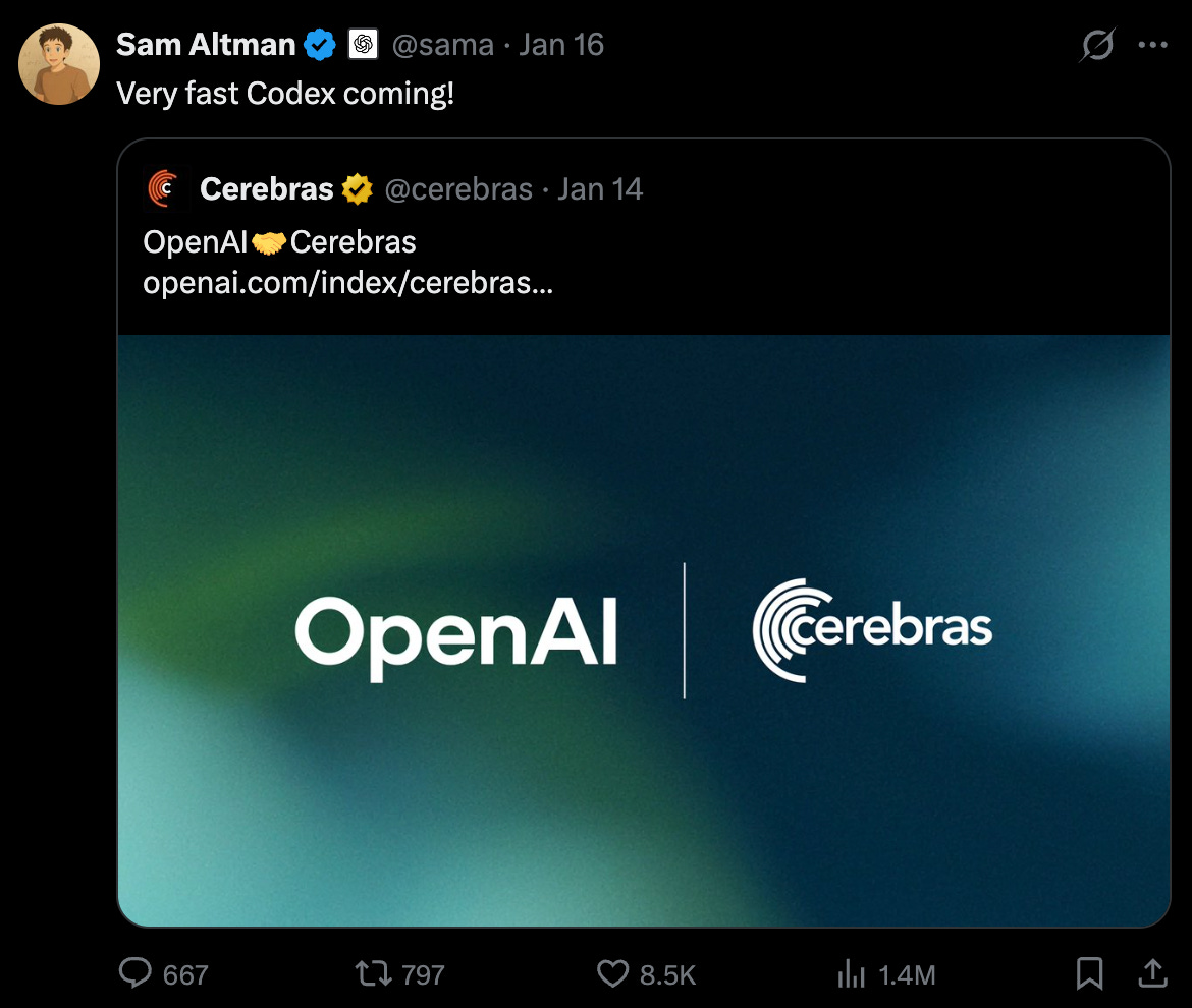 “Cerebras adds a dedicated low-latency inference solution to our platform. That means faster responses, more natural interactions, and a stronger foundation to scale real-time AI to many more people”