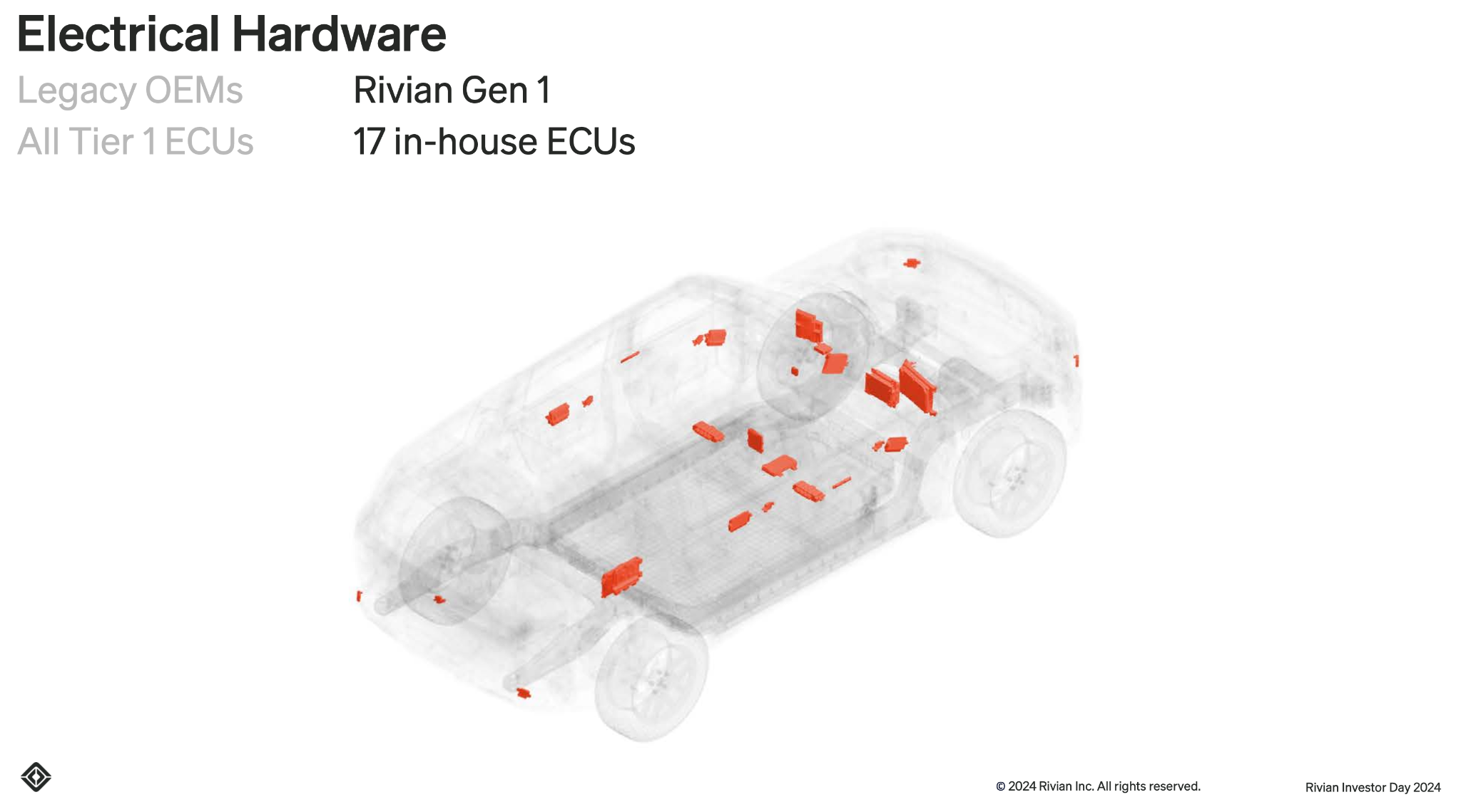 How do we do it at Rivian? At Rivian, with the vertical integration that we have between hardware and software, we developed a much cleaner and simpler architecture. With the powerful compute that we have, we simplified the hardware architecture, moved that complexity to software.