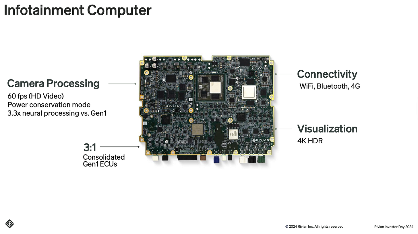 🧢 As a Semiconductor analyst: Rivian isn’t like the traditional semis companies I often cover (Nvidia, AMD, Intel, etc), but it’s super interesting in the way that Apple Silicon is super interesting. After all, Apple is a consumer product company that starts with an uncompromising view of the user experience, then designs the silicon and system architecture to support it.