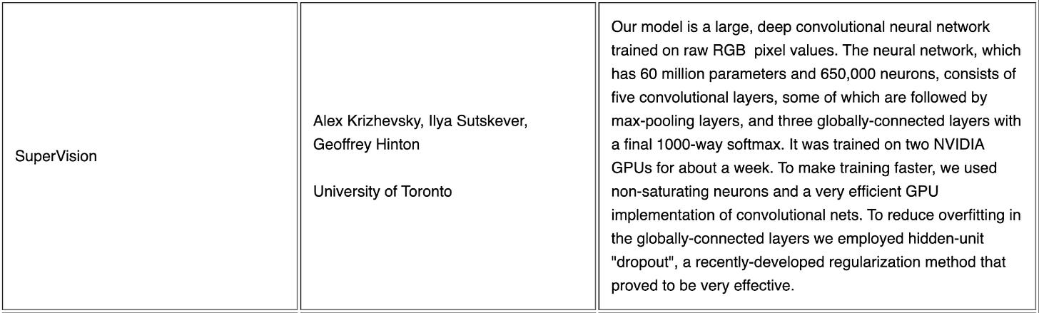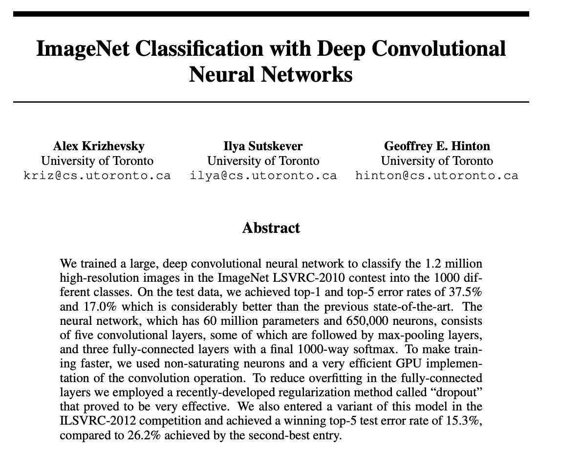 Three years later, ImageNet enabled the infamous AlexNet.