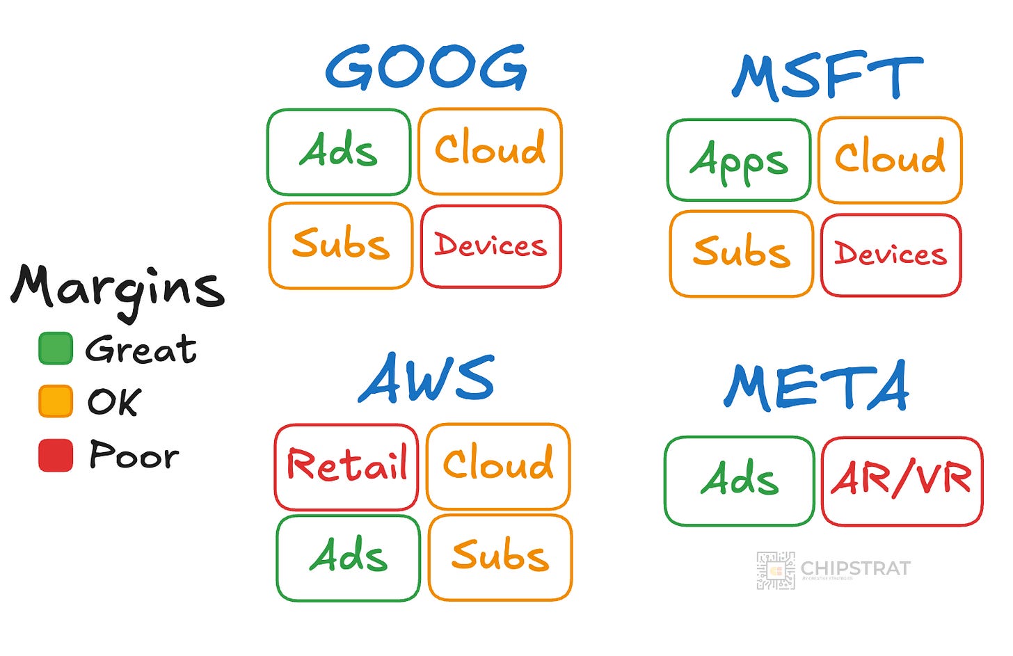 The other three horsemen are investing compute into quick returns with smaller gross profit dollars (cloud). It’s a safe investment in OK businesses.