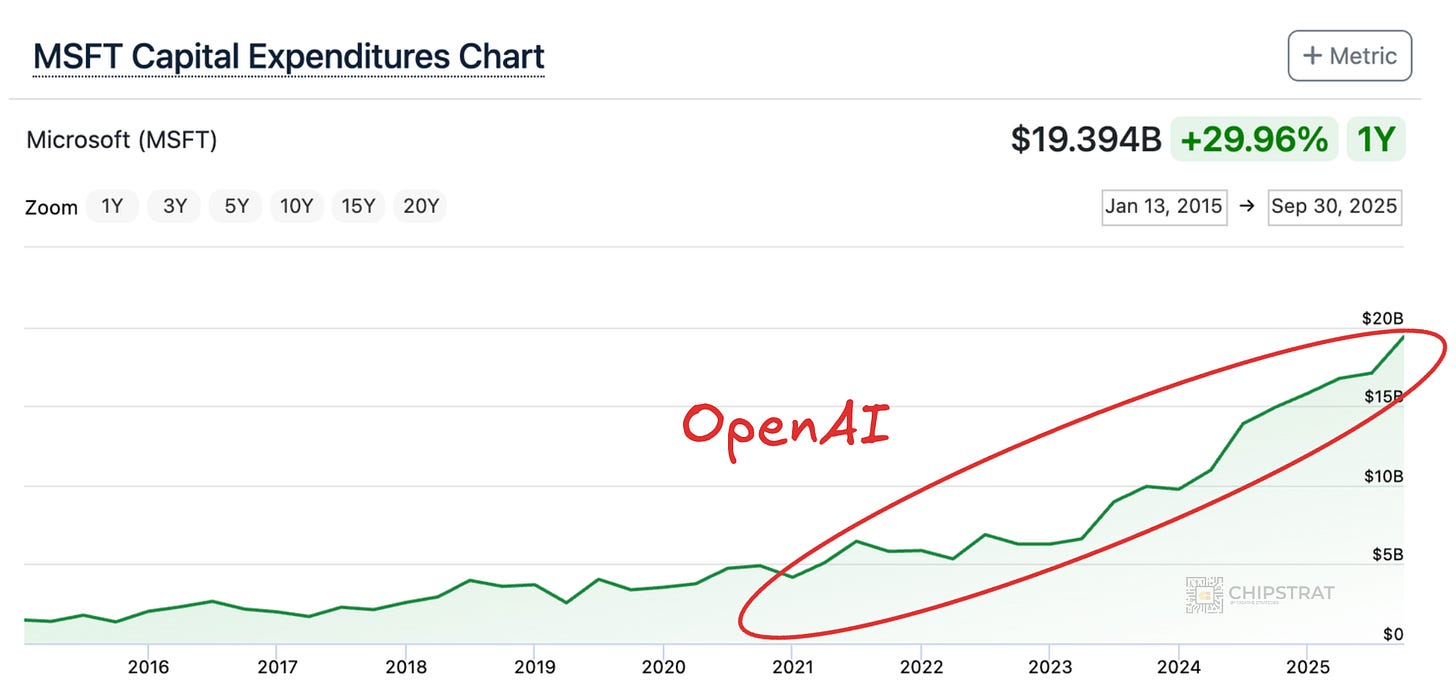 To Microsoft’s credit, it’s the first-mover on AI CapEx, going way back before the Nov 2022 ChatGPT launch.