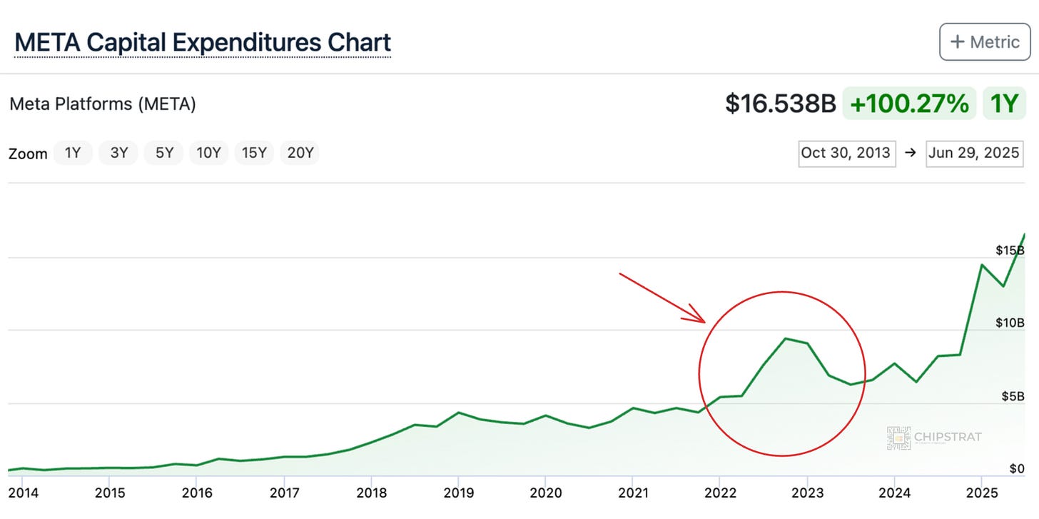 At the time, the investment in AI infra it was to overcome ATT (see Stratechery for more). And it worked and is still paying dividends today, as revenue is not yet significantly impacted by Generative AI.