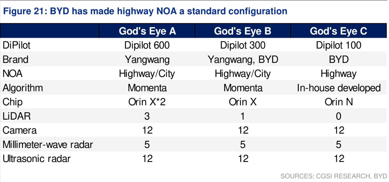 BYD, for example, uses the entry Orin for its Gods Eye highway L2+ product.
